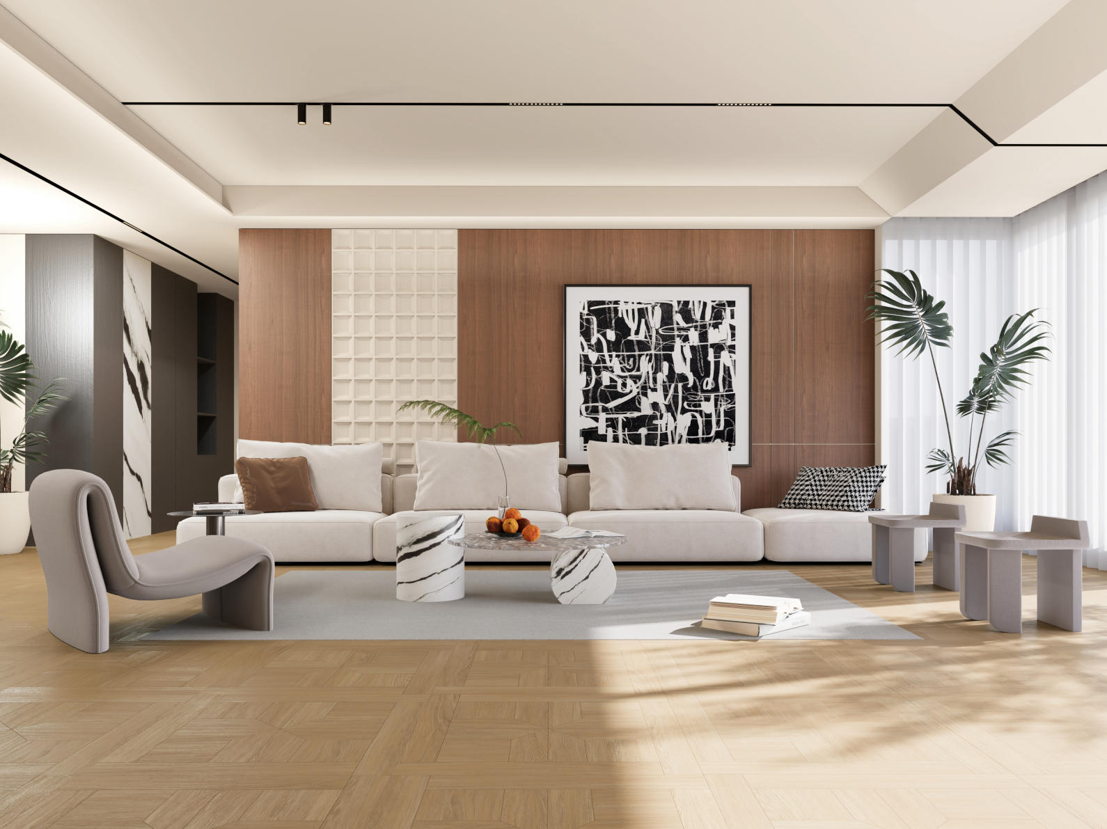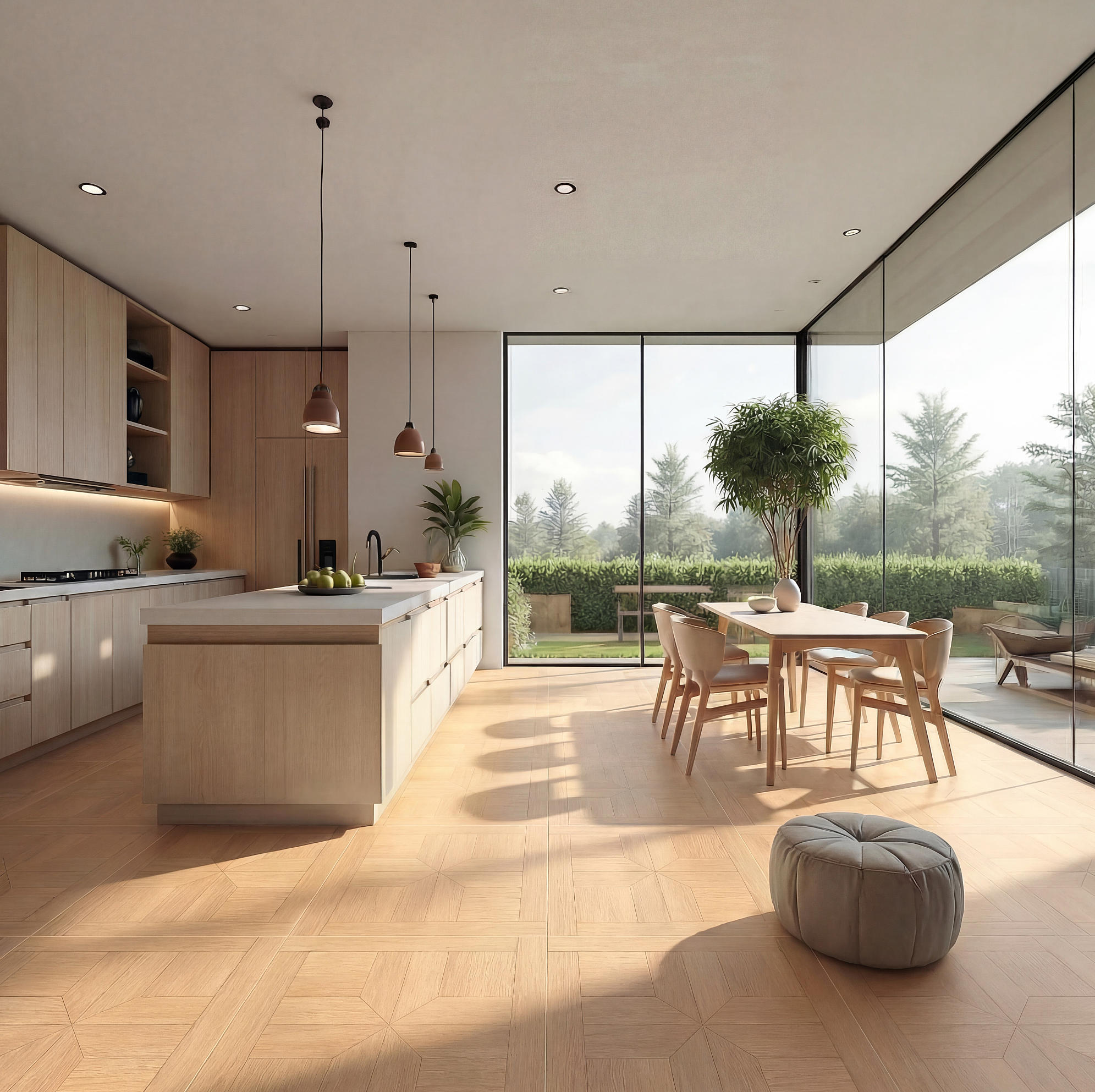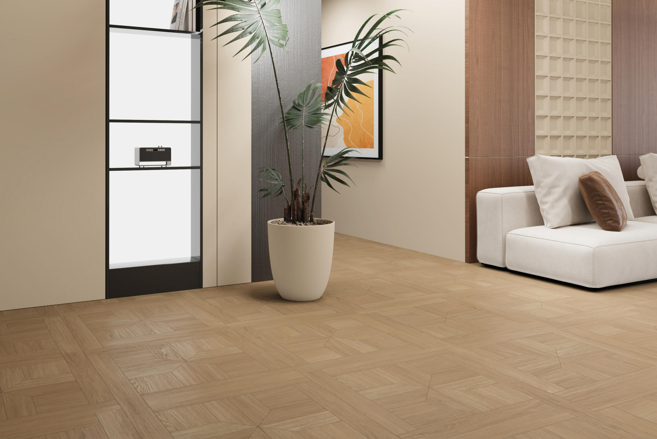 淺夏格調(diào)以萬字拼花為設(shè)計(jì)錨點(diǎn),將幾何的秩序韻律,織入原生木色的溫柔肌理,打造讓空間有情緒、有質(zhì)感的生活載體,讓每一道木紋都承載著歲月沉甸甸鄂故事。